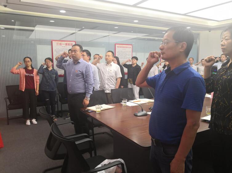 城市黨委對這次系列參觀活動很重視,副書記楊劍、黨委委員尚正祥、曹涯超隨后與支部黨員進行了座談。黨委委員曹涯超介紹了黨委的基本情況,說明近一段時間的主要工作,并現(xiàn)場為支部成員發(fā)放了《中國共產(chǎn)黨黨員教育管理工作條例》、《掃黑除惡專項斗爭應(yīng)知應(yīng)會手冊》。王杲書記匯報支部成立以來的黨建工作和組織發(fā)展情況。楊書記帶領(lǐng)大家進行黨員宣誓,重溫誓詞。
