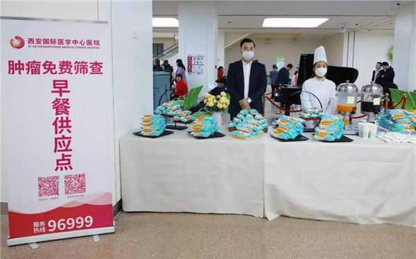 66歲的李大爺,家住丈八街辦里花水社區(qū),在網(wǎng)上得知西安國際醫(yī)學(xué)中心醫(yī)院免費(fèi)腫瘤篩查的消息后,讓娃在網(wǎng)上給他預(yù)約好, 24日早上7點(diǎn),他坐公交車來到西安國際醫(yī)學(xué)中心醫(yī)院,在護(hù)士的陪伴下很快就完成了采血、B超等項(xiàng)目的檢查,坐在免費(fèi)早餐區(qū)開心的享用著熱牛奶和面包,“你是記者,我要實(shí)事求是的告訴你,絕不夸張,這里的服務(wù)是5星級(jí)!你說冒著雨雪趕來,一進(jìn)門,護(hù)士像親人一樣主動(dòng)招呼我,全程微笑著引導(dǎo)我做檢查,讓人很感動(dòng)?!崩畲鬆攲?duì)記者說出了自己的感受。