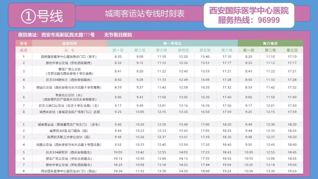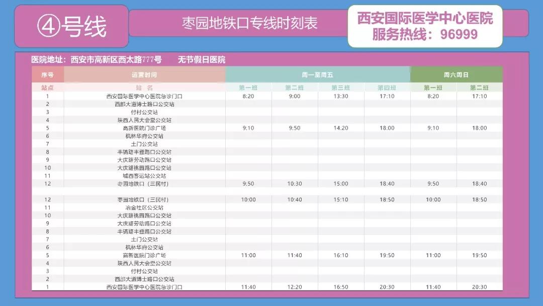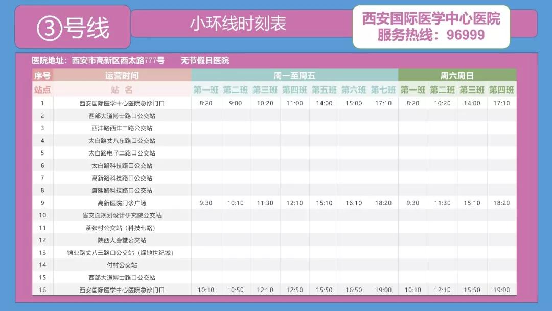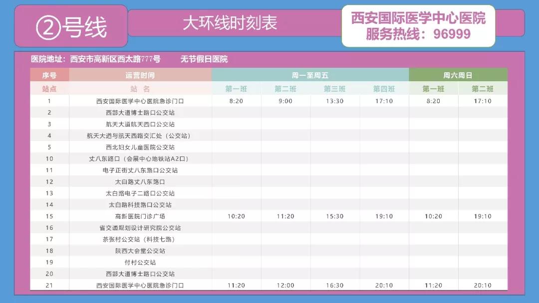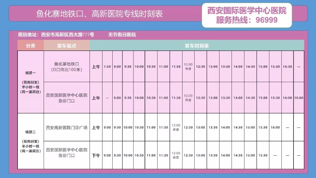 備注:西安國際醫(yī)學(xué)中心醫(yī)院——高新醫(yī)院運(yùn)行時間為:周一至周五。