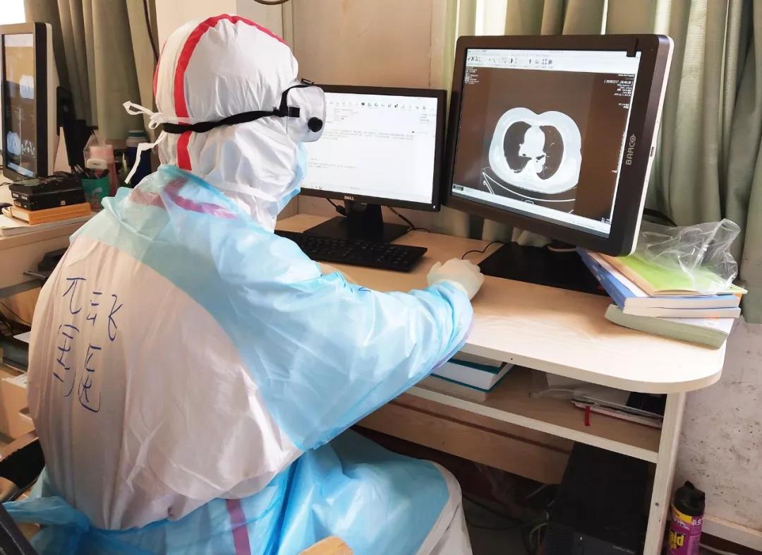 一個班次工作結(jié)束,兀云飛脫下防護服已是大汗淋漓?!皠倎淼臅r候,穿著防護裝備看片速度有些慢,不過經(jīng)過一段時間適應后快多了,我多看一個片子,就有一個人多一份希望。”兀云飛說。