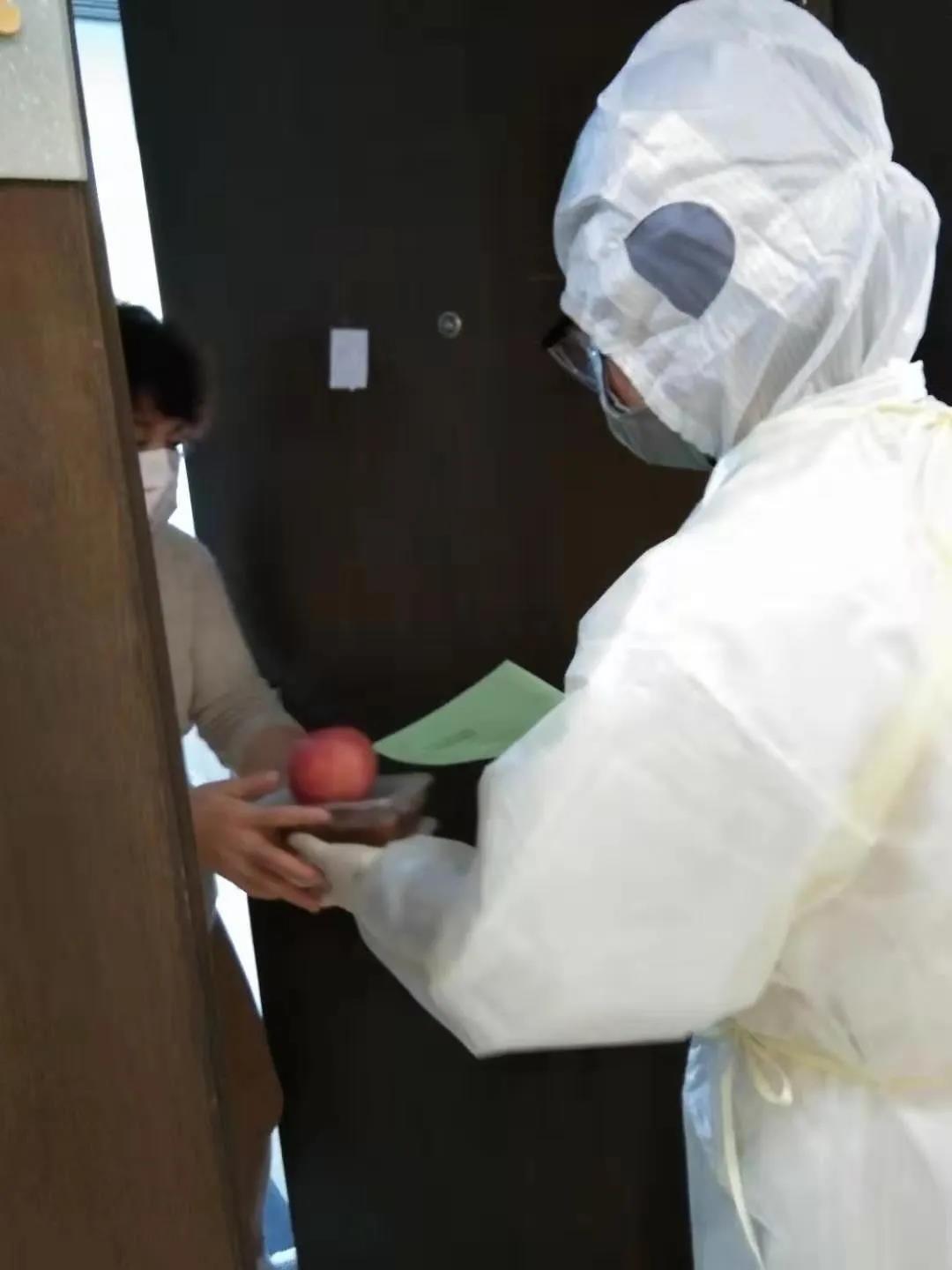 在這里的每一天,“累”是所有醫(yī)務(wù)工作者的共同感受,因為隔離點接受的大都是從武漢回來的人群,所以我們都要做好三級防護的自我保護措施。這里被隔離者都是我們的親人,生活起居,心理輔導(dǎo),事無巨細都由我們照料。記得剛來的那幾天,穿著不透氣的隔離衣給留觀者送餐時,送到一半時突然感覺自己呼吸不暢,后面的衣服都濕透了,怕自己撐不住,趕快跑到安全通道脫下面罩,解開隔離衣,那一刻好想休息片刻,但是看著箱子里的飯菜,我又重新穿起了隔離衣。我的放松會讓飯菜變涼,家人們吃了會不舒服。想到這里,我邁出堅定的步伐,加入到戰(zhàn)斗中。