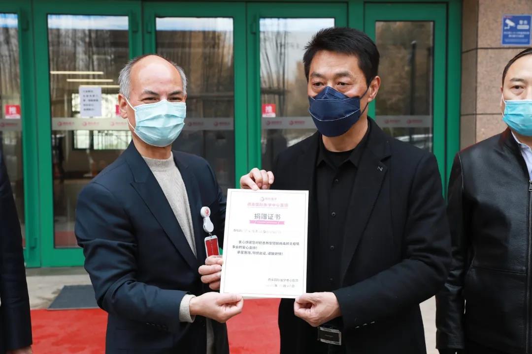 新型冠狀病毒感染的肺炎疫情發(fā)生以來,西安國際醫(yī)學中心醫(yī)院沖鋒在前,堅守一線,更有社會各界愛心人士貢獻力量。2月26日,陜西省烹飪餐飲行業(yè)協(xié)會會長杜西鋒一行,向西安國際醫(yī)學中心醫(yī)院捐贈凈菜50箱、食用油48桶、牛奶50箱,表達對醫(yī)護人員的關愛。國際醫(yī)學財務總監(jiān)權穩(wěn)延出席捐贈儀式。