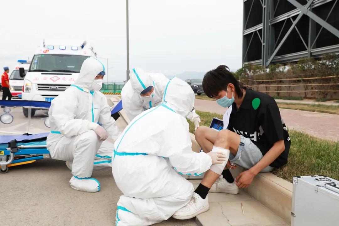 隨后院長(zhǎng)尹強(qiáng)通過(guò)對(duì)講機(jī)發(fā)出演練開(kāi)始指令。在觀摩組的注視下,一支由22輛急救車(chē)及20組醫(yī)、護(hù)、工人員組成的救援隊(duì)立刻趕赴模擬的重大交通事故現(xiàn)場(chǎng)進(jìn)行應(yīng)急救援。