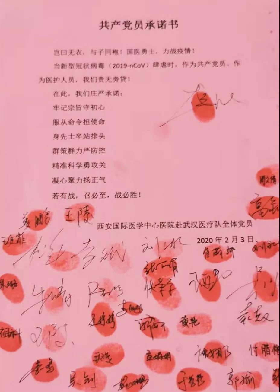 2月3日,西安國際醫(yī)學中心醫(yī)院赴武漢醫(yī)療隊抗擊新型冠狀病毒感染的肺炎承諾踐諾書一經發(fā)布,又有一批批醫(yī)護人員紛紛遞交請戰(zhàn)書、入黨申請書。