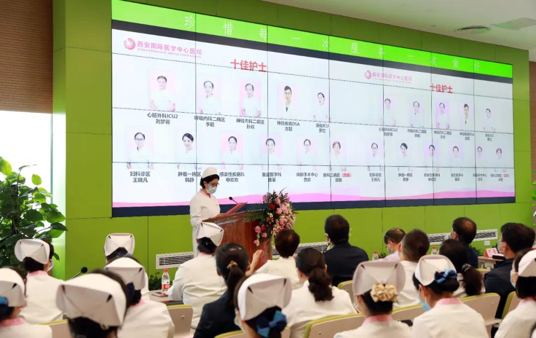隨后,院領(lǐng)導(dǎo)為“十佳護(hù)士”頒獎,心臟外科ICU劉夢馨、呼吸內(nèi)科二病區(qū)李昭、神經(jīng)內(nèi)科二病區(qū)孫歡、神經(jīng)疾病DSA古超、消化ICU羅紅、婦科診區(qū)王曉凡、腫瘤一病區(qū)韓靜、感染性疾病科申歡歡、重癥醫(yī)學(xué)科康菲、麻醉手術(shù)中心賈歡獲此殊榮。6位“十佳護(hù)士”代表做了先進(jìn)事跡匯報(bào),追尋著南丁格爾的足跡,他們暢談了在醫(yī)院成長的經(jīng)歷,分享了戰(zhàn)疫故事,表明了立志為護(hù)理事業(yè)奮斗終生的決心,踐行“珍惜每一次服務(wù),一次做好”的信心。