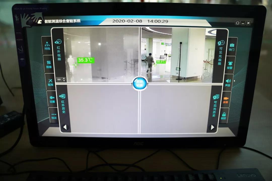 西安國(guó)際醫(yī)學(xué)中心醫(yī)院在三個(gè)主要通道均設(shè)立體溫檢測(cè)點(diǎn),逢人必檢、逢疑必核。當(dāng)被測(cè)目標(biāo)在紅外鏡頭探測(cè)器鏡頭8米內(nèi)快速經(jīng)過(guò)時(shí),儀器在1秒鐘內(nèi)便可顯示人體熱圖像和最高體溫標(biāo)度。若被檢測(cè)者體溫異常,該系統(tǒng)便立即報(bào)警并拍攝體溫異常者圖像。