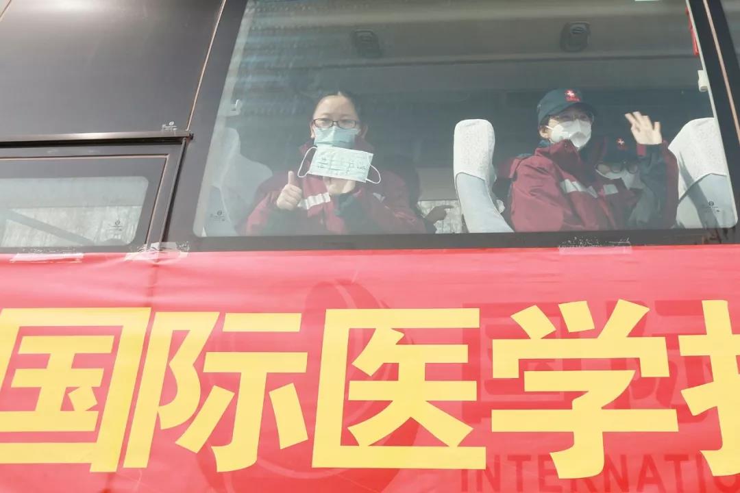 “每一次集結(jié)號(hào)吹響,你們都奮勇向前,在疫情面前無(wú)私奉獻(xiàn)、敢于擔(dān)當(dāng),正是因?yàn)槲覀冇写髳?。?guó)際醫(yī)學(xué)人時(shí)時(shí)刻刻都不忘初心、牢記使命,用行動(dòng)踐行我們的誓言:施天使之愛,佑百姓健康!”董事長(zhǎng)史今在儀式上向出征隊(duì)員致敬并叮囑隊(duì)員們一定要保護(hù)好自己,“零感染、高質(zhì)量、共克時(shí)艱,出色完成患者的救治任務(wù)。你們帶去的是陜西人民對(duì)武漢人民的深情厚誼,要讓黨旗在一線高高飄揚(yáng)!和武漢人民一起共度難關(guān)!”