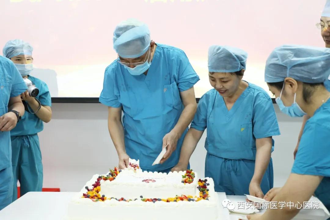最后,在全體人員熱烈的掌聲下,醫(yī)院領(lǐng)導共同切蛋糕,慶祝所取得的豐碩成果。