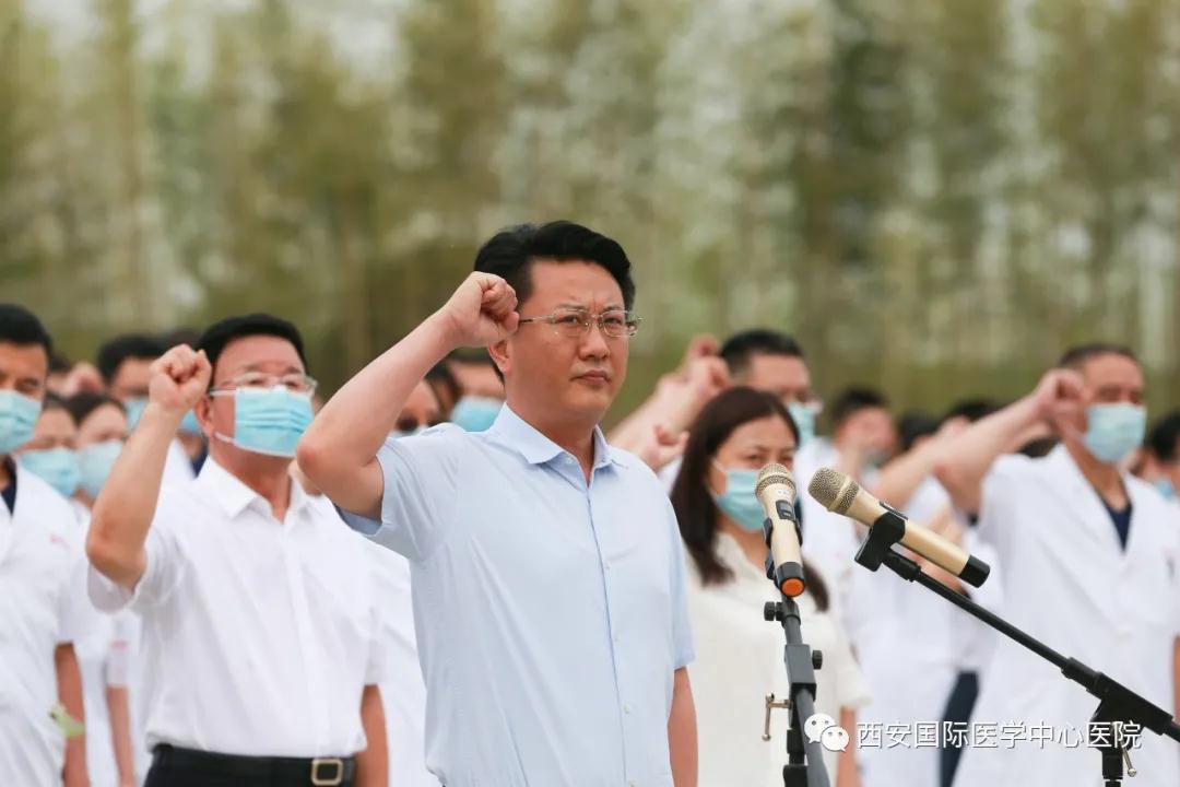 8月3日,西安國際醫(yī)學(xué)中心醫(yī)院舉行新員工入職宣誓暨崗前培訓(xùn)總結(jié)儀式。尹強(qiáng)院長、王志峰總經(jīng)理、楊峰副院長、李武平副院長、張斌副院長、財(cái)務(wù)總監(jiān)王亞星等領(lǐng)導(dǎo)出席,232名新入職員工參加。入職儀式由楊峰副院長主持。