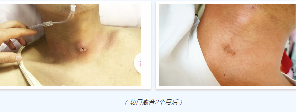 患者妻子含淚回顧了當(dāng)時的情況,“當(dāng)他被推進(jìn)重癥醫(yī)學(xué)科的那一刻,我的心如撕裂般的疼痛,家人們也早已泣不成聲,我們面對的是一個陌生的地方,不知道里面正在發(fā)生著什么,對突如其來的意外更是無所適從。尤其是醫(yī)生說需要做氣管切開時,一想到要在他脖子上開一道口子我們就心痛,擔(dān)心會影響他說話;擔(dān)心傷口長不上;擔(dān)心他將來留個疤,甚至懷疑做了氣管切開就是沒救了?,F(xiàn)在看來,我們的擔(dān)心是多余的?,F(xiàn)在脖子上的傷口不僅很小而且很美觀,不仔細(xì)看根本看不出來?!?