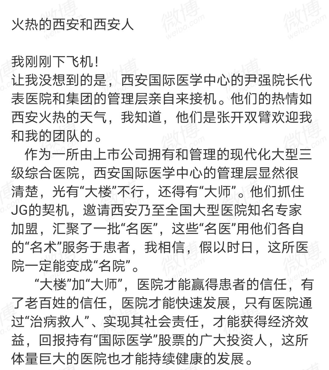 “讓我沒想到的是,西安國(guó)際醫(yī)學(xué)中心醫(yī)院的尹強(qiáng)院長(zhǎng)代表醫(yī)院和集團(tuán)的管理層親自來接機(jī),我知道,他們是張開雙臂歡迎我和我的團(tuán)隊(duì)的。”這是郭樹忠教授加盟該院時(shí),在機(jī)場(chǎng)發(fā)布的一條微博。