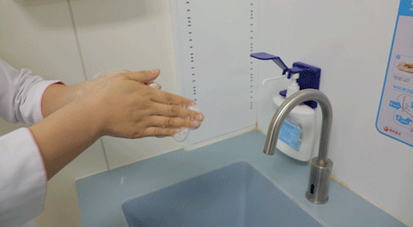 手上涂抹適量洗手液或者香皂,掌心相對,手指并攏,相互揉搓。