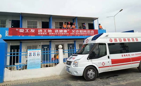 2017年7月8日,由國際醫(yī)學(xué)旗下西安高新醫(yī)院、高新區(qū)藍(lán)博社區(qū)衛(wèi)生服務(wù)中心聯(lián)合中建三局組織的“愛工友、進(jìn)工地、送健康”義診慰問活動(dòng)在西安國際醫(yī)學(xué)中心項(xiàng)目工地舉辦,為現(xiàn)場(chǎng)施工工友們送上關(guān)愛和祝福。