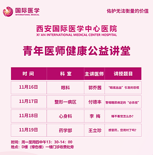 西安國際醫(yī)學中心醫(yī)院—青年醫(yī)師健康公益講堂預(yù)告