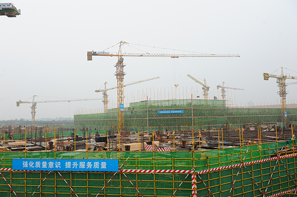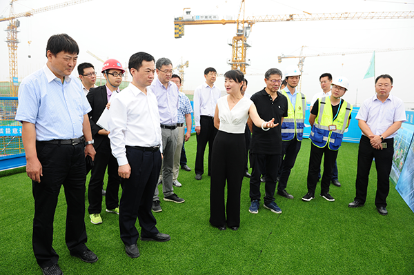 隨后李毅一行在史總帶領下,來到工地現(xiàn)場的二層觀景平臺,面對規(guī)模宏大,塔吊林立的建筑現(xiàn)場,看到項目整體浮出地面,中心醫(yī)技樓已建至二層,李書記對項目建設進度表示驚喜,同時對建設管理表示肯定。期間,史總結合施工現(xiàn)場和效果圖為李書記詳細介紹了國際醫(yī)學城的建設架構,功能劃分等情況,之后還就規(guī)劃建設的“一心兩翼 天使之城”健康中國小鎮(zhèn)的設計理念,“五位一體”功能布局等做了詳細介紹和說明。