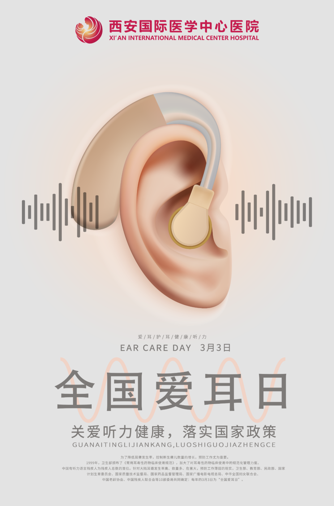 3月3日是第22個“全國愛耳日”。今天,西安國際醫(yī)學(xué)中心醫(yī)院舉行“助力聽力康復(fù) 人人享有聽力健康”義診活動,耳鼻咽喉頭頸外科劉志主任率領(lǐng)醫(yī)護(hù)團(tuán)隊通過健康咨詢、免費檢查等方式為廣大群眾提供醫(yī)療服務(wù),使大家對耳聾及其防治、助聽器選配有了更多了解。