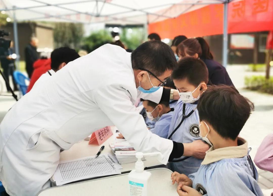 在創(chuàng)匯社區(qū)義診現(xiàn)場,高新第八幼兒園的小朋友們在醫(yī)護人員的帶領(lǐng)下學(xué)做“洗手操”。醫(yī)生用通俗易懂的語言,詳細講解了洗手的重要性及如何正確洗手遠離細菌等相關(guān)知識,分步驟教會了小朋友們?nèi)绾握_洗手。同時,醫(yī)護人員還為小朋友們介紹了體檢車的功能及用途,并帶領(lǐng)大家進入體檢車參觀。