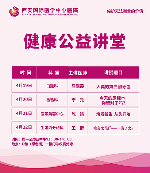 西安國際醫(yī)學(xué)中心醫(yī)院—青年醫(yī)師健康公益講堂預(yù)告