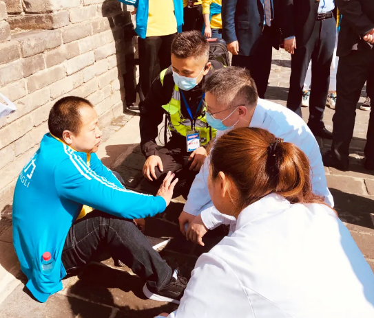 比賽期間,全體參賽人員憑借頑強(qiáng)拼搏的精神和追趕超越的熱情,勇往直前、突破自我,堅(jiān)持跑完整個(gè)賽事全程?;顒?dòng)進(jìn)行半小時(shí)左右,一位阿姨快速向醫(yī)療服務(wù)站走來(lái),尋求幫助。“那邊有人突然不舒服,該怎么辦?。俊卑⒁陶f(shuō)。