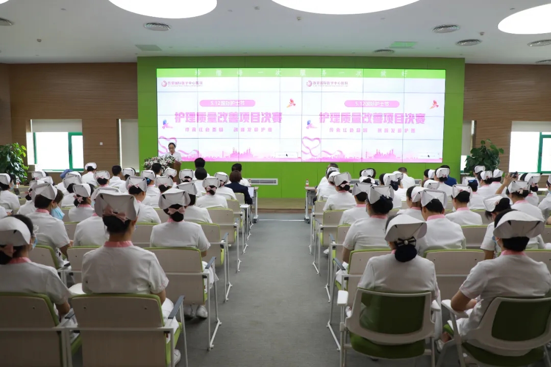 為了弘揚南丁格爾精神,展現(xiàn)白衣天使的風(fēng)采,5月10日,西安國際醫(yī)學(xué)中心醫(yī)院在保障樓設(shè)主會場、各科室遠(yuǎn)程會診中心設(shè)分會場,舉辦5?12國際護(hù)士節(jié)系列活動十佳護(hù)士表彰大會暨護(hù)理質(zhì)量改善項目決賽。西安國際醫(yī)學(xué)中心醫(yī)院院長尹強(qiáng),總經(jīng)理王志峰,副院長李武平、楊峰、張斌,國際康復(fù)醫(yī)學(xué)中心醫(yī)院蘇庚洵副院長,院長助理劉延彤、張良,心臟病醫(yī)院院長王海昌,各部辦主任、科室主任及全院護(hù)理人員參加?;顒佑勺o(hù)理部主任張敏主持。