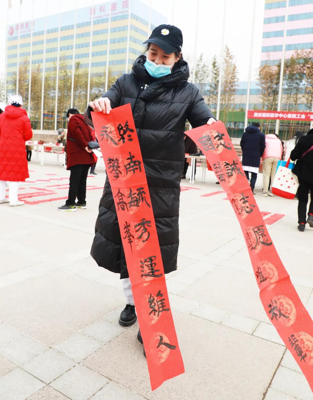全天活動中,書法名家為現(xiàn)場群眾書寫了600余副對聯(lián),得到群眾的一致認(rèn)可和熱烈歡迎,大家接過寫滿祝福和美好祝愿的對聯(lián)時(shí),喜悅之情溢于言表。“看到對聯(lián),就覺得春節(jié)的腳步越來越近了,謝謝醫(yī)院這么暖心。”一位手捧對聯(lián)的患者家屬高興地說。