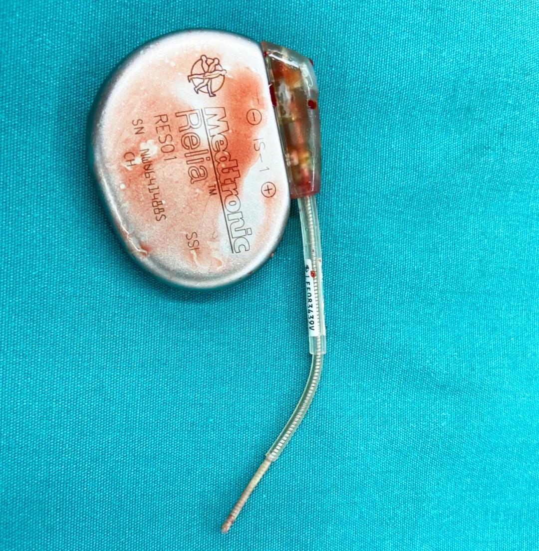 18歲的甜葵迎來(lái)了她人生中的第二次開(kāi)胸體外循環(huán)手術(shù)。股動(dòng)靜脈插管進(jìn)行體外循環(huán)轉(zhuǎn)流保駕,搖擺鋸劈開(kāi)胸骨,游離粘連心包,游離上下腔靜脈,插上腔直角插管,阻斷上下腔。切開(kāi)右心房,可見(jiàn)起搏器纏繞在右心房?jī)?nèi),導(dǎo)線從右心耳處穿出,進(jìn)入心包腔,沿右側(cè)心包到達(dá)右前心包與膈肌交界,穿出心包腔,進(jìn)入腹部皮下。張金洲副院長(zhǎng)小心翼翼地在導(dǎo)線出右房處剪斷,一點(diǎn)點(diǎn)分離將電極從右心室心內(nèi)膜拔出。心包外導(dǎo)線和隧道一并切除至膈肌處,檢查右心室內(nèi)膜光滑,無(wú)破損,停止體外循環(huán)。雙氧水、碘伏、抗生素、生理鹽水反復(fù)沖洗起搏器囊袋和竇道,逐層縫合皮下組織和皮膚,手術(shù)順利完成。術(shù)后第二天拔除氣管插管,次日搬回普通病房。甜葵于6月10日轉(zhuǎn)至心臟內(nèi)科一病區(qū),11日下午張衛(wèi)澤副院長(zhǎng)為其安置永久起搏器,手術(shù)順利。