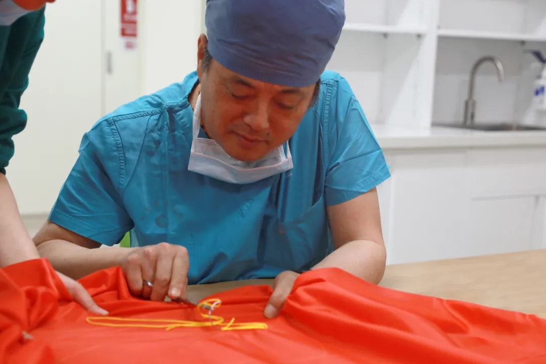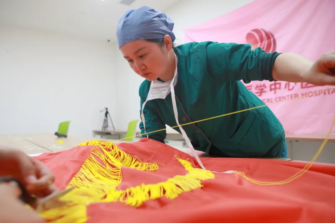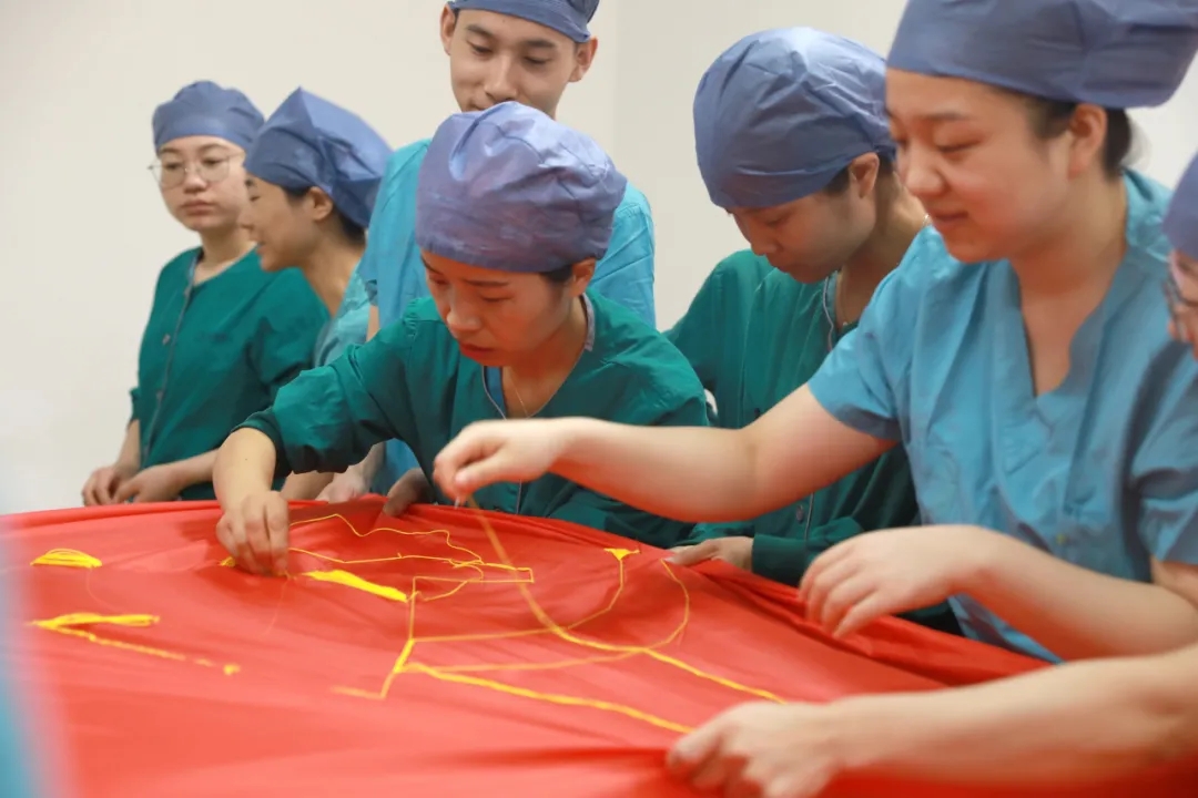 有著15年黨齡的主管護師譚婷婷覺得這項活動很有紀念意義?!啊细锩龅搅诵聠栴},用手術(shù)針繡旗有難度,既要保持旗面平整,又要保證針腳密集,這樣繡出來的圖案立體,色彩飽滿?!蓖ㄟ^活動,她充分感受到向上奮進的正能量,將永葆黨員的先進性。