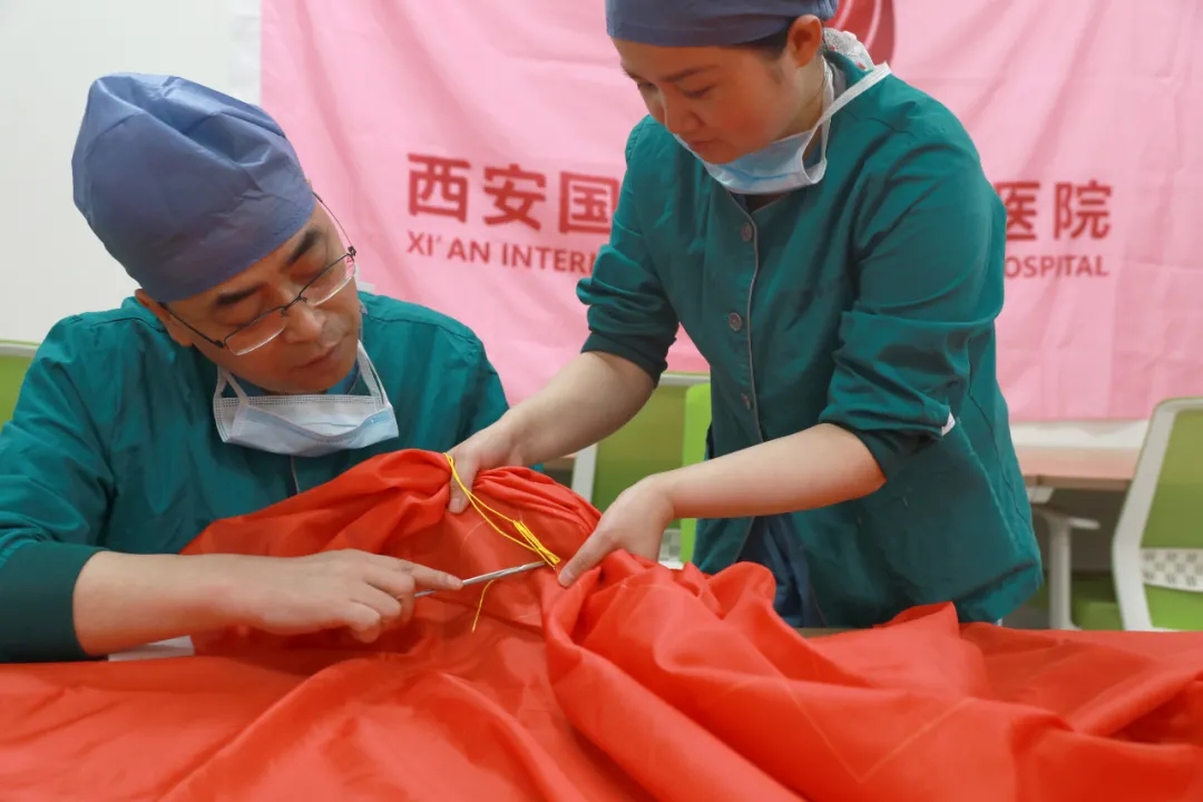 以手術(shù)針為工具,用接力的形式凝心聚力,把對黨的忠誠與熱愛融進針線中。西安國際醫(yī)學中心醫(yī)院黨委設(shè)有11個黨支部,有607名黨員,其中專家黨員200余名。繡黨旗活動是該院開展黨史學習教育的一項重要內(nèi)容。共憶入黨初心、從醫(yī)使命,回顧黨的光輝歷程,通過此項活動,黨員們的榮譽感、使命感和責任感增強了,更加堅定了聽黨話、跟黨走的信念。