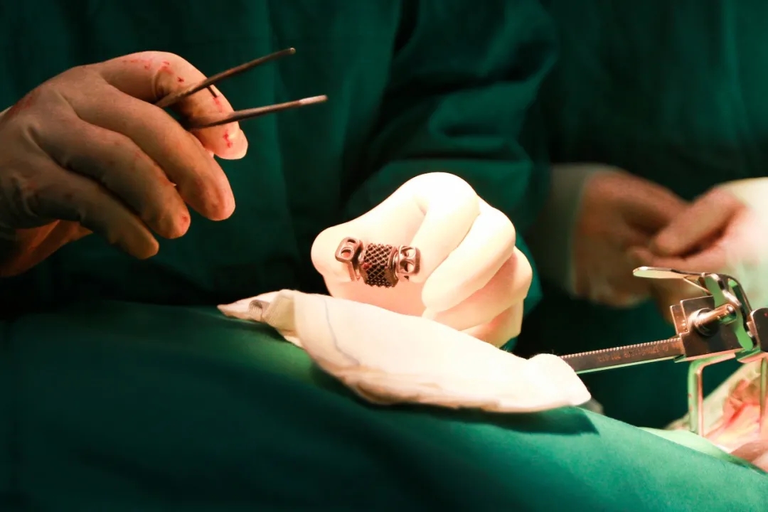 骨科醫(yī)院院長賀西京團隊又成功地為一位63歲脊髓型頸椎病伴不完全癱瘓的患者實施了頸4椎體椎間盤切除、3D打印Ti6Al4V合金可動人工頸椎——椎間盤復(fù)合體植入術(shù)。這一高難度精準手術(shù)處于國際先進水平。