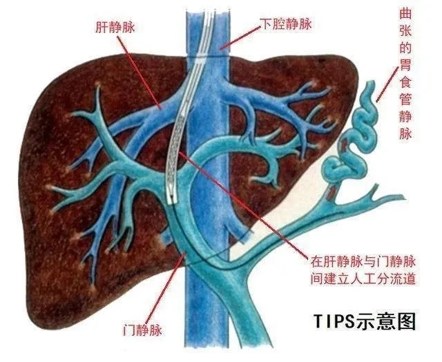 TIPS手術(shù)的出現(xiàn),就是為了解決門靜脈壓力過高引起的一系列并發(fā)癥。手術(shù)原理就是在肝靜脈和門靜脈之間建立一個(gè)分流通道,讓壓力很高的門靜脈血,能順利的流出,以達(dá)到降低門靜脈壓力的目的。