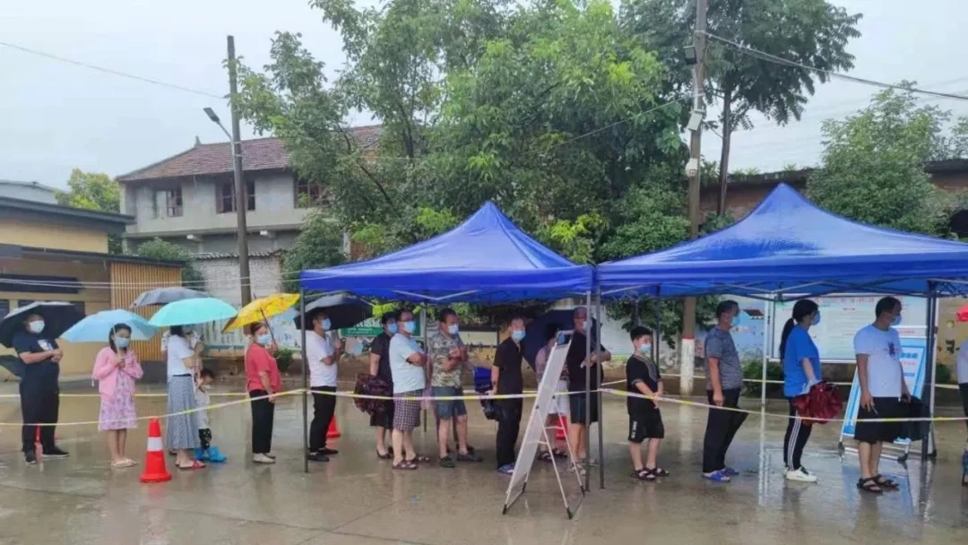 風(fēng)雨交加的社區(qū)中,一幕幕溫情畫(huà)面也在上演。在五星街道北張堡村,郭小娟護(hù)士正在給五歲的小女孩做核酸檢測(cè),做完后,小女孩的一聲:“謝謝阿姨!”讓她紅了眼眶。原來(lái),這周她本要陪孩子好好過(guò)個(gè)周末,但周五接到集結(jié)通知,她毫不猶豫報(bào)了名,只好將三歲半的孩子交給父母照顧?!白蛲砘丶乙呀?jīng)十點(diǎn)了,孩子還在等我,問(wèn)我熱不熱。雖然沒(méi)能在家陪他,但是能在核酸檢測(cè)點(diǎn)守護(hù)大家的健康,我覺(jué)得很自豪?!惫【暾f(shuō)。