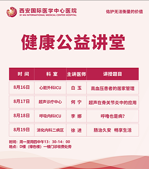 西安國際醫(yī)學(xué)中心醫(yī)院—青年醫(yī)師健康公益講堂預(yù)告