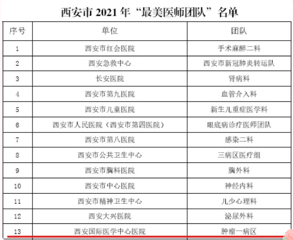 西安市衛(wèi)健委表彰了西安市2021年“最美醫(yī)師團(tuán)隊”、“最美醫(yī)師”。腫瘤一病區(qū)榮獲西安市2021年“最美醫(yī)師團(tuán)隊”,胸科醫(yī)院韓新鵬、腦科醫(yī)院馬濤榮獲西安市2021年“最美醫(yī)師”。
