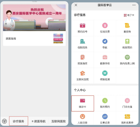 (2)已經(jīng)有就診卡的人員,無需再進(jìn)行綁卡,直接點(diǎn)擊【就診卡】查看個(gè)人ID號(hào)。