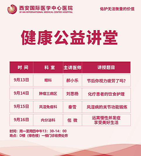 西安國際醫(yī)學(xué)中心醫(yī)院—青年醫(yī)師健康公益講堂預(yù)告