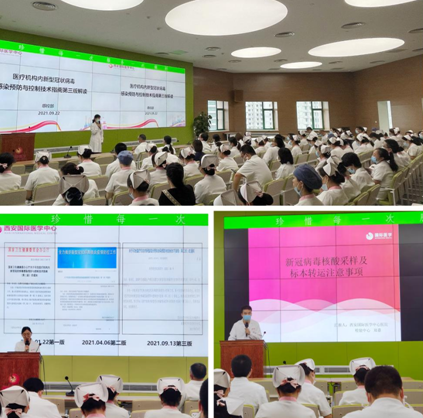 當(dāng)日下午,感控部、檢驗(yàn)中心對(duì)新冠肺炎感染防控及核酸采樣技術(shù)進(jìn)行了全員培訓(xùn),詳細(xì)解讀了《醫(yī)療機(jī)構(gòu)內(nèi)新型冠狀病毒感染防控與控制技術(shù)指南(第三版)》、等級(jí)醫(yī)院評(píng)審手衛(wèi)生指標(biāo)要求、核酸采樣技術(shù)及標(biāo)本轉(zhuǎn)運(yùn)注意事項(xiàng)。