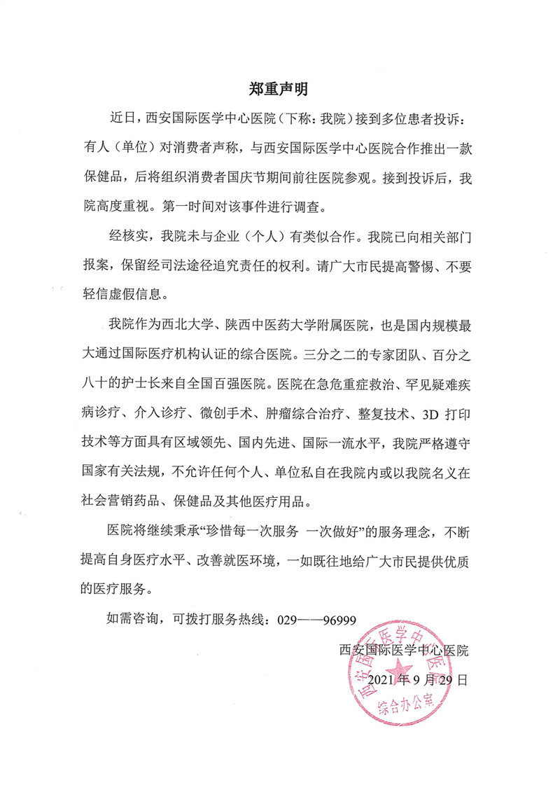 • 國內(nèi)首家高分通過JCI認(rèn)證的醫(yī)院 西安國際醫(yī)學(xué)中心醫(yī)院為國內(nèi)首家高分通過JCI認(rèn)證的醫(yī)院,該稱號(hào)由國際醫(yī)療機(jī)構(gòu)認(rèn)證聯(lián)合委員會(huì)頒布。
