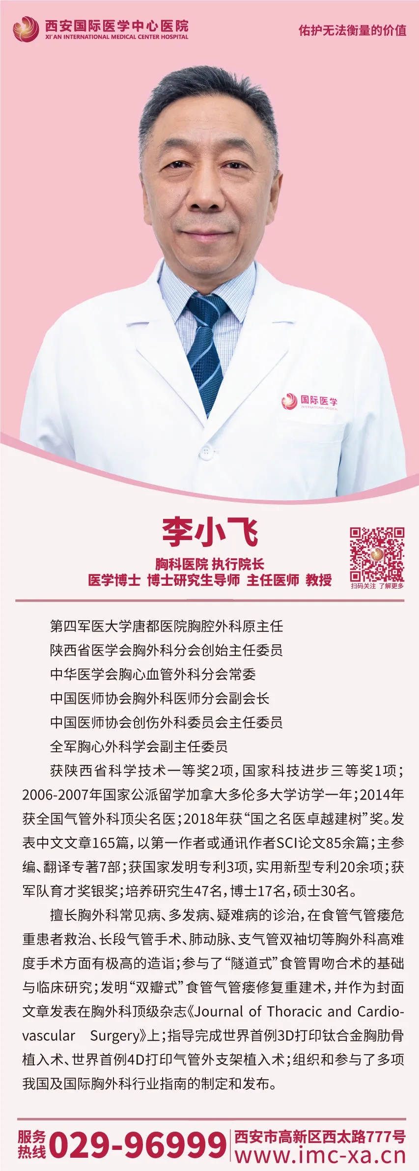 10月21日,著名胸科專家、第四軍醫(yī)大學(xué)唐都醫(yī)院胸腔外科原主任李小飛教授加盟西安國(guó)際醫(yī)學(xué)中心醫(yī)院,任胸科醫(yī)院執(zhí)行院長(zhǎng),為醫(yī)院發(fā)展注入強(qiáng)勁動(dòng)力,促進(jìn)醫(yī)院專業(yè)學(xué)科水平躍上新臺(tái)階。