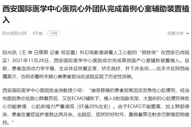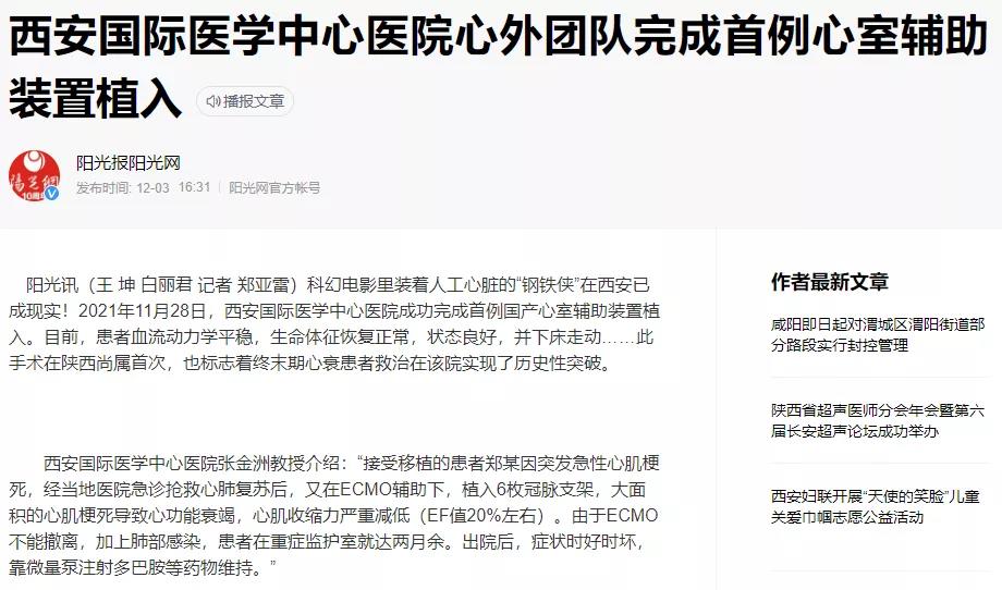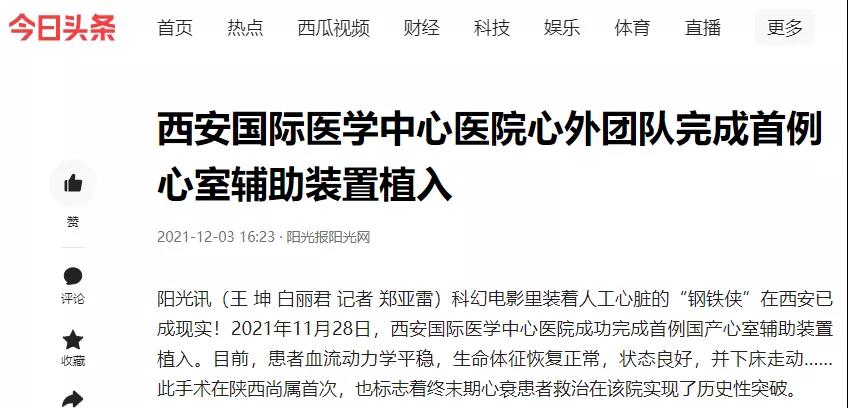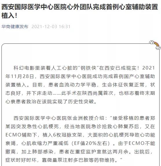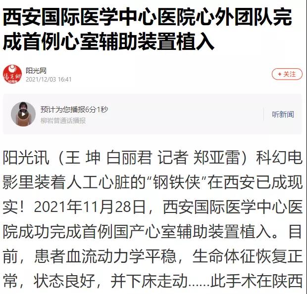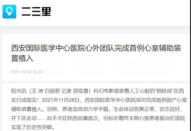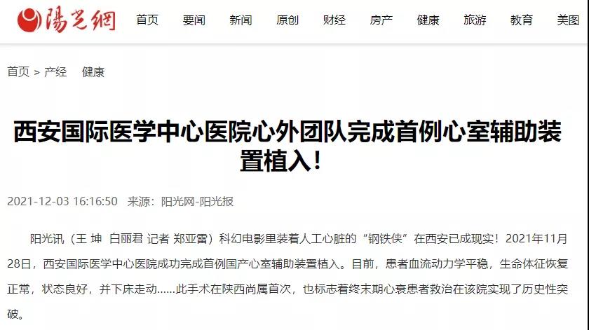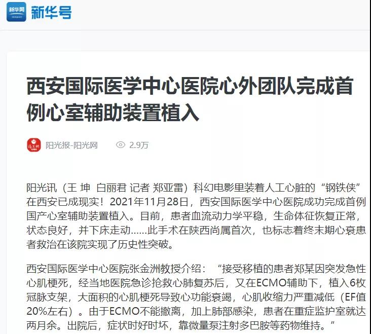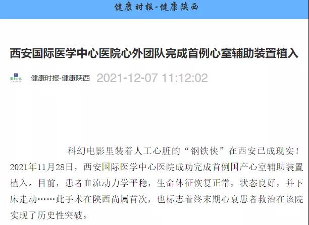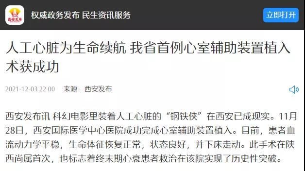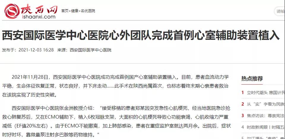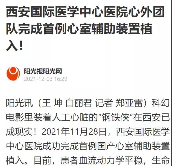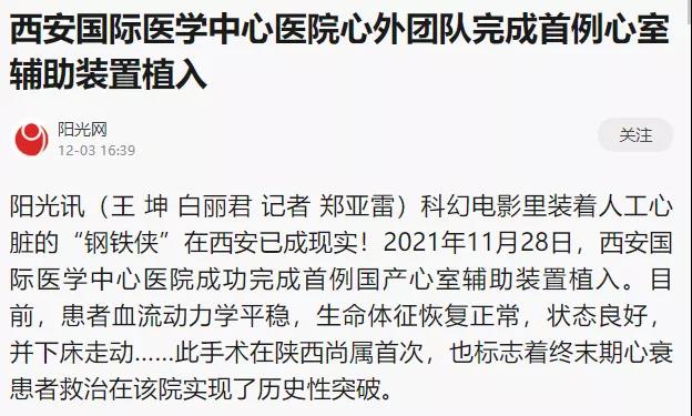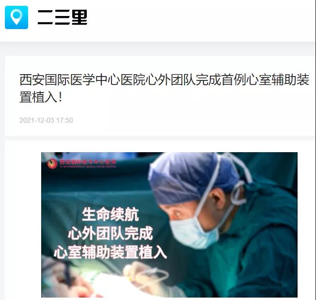 西安國際醫(yī)學中心醫(yī)院心外團隊完成首例心室輔助裝置植入!