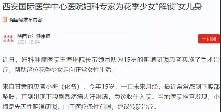西安國際醫(yī)學中心醫(yī)院婦科專家為花季少女“解鎖”女兒身