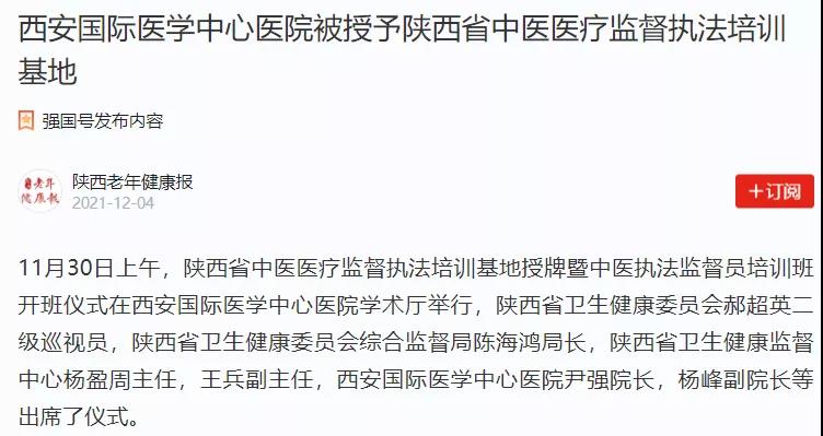西安國際醫(yī)學中心醫(yī)院被授予陜西省中醫(yī)醫(yī)療監(jiān)督執(zhí)法培訓基地