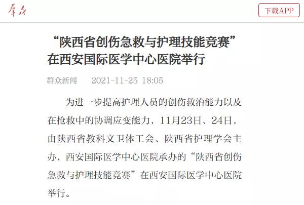 “陜西省創(chuàng)傷急救與護理技能競賽”在西安國際醫(yī)學中心醫(yī)院舉行