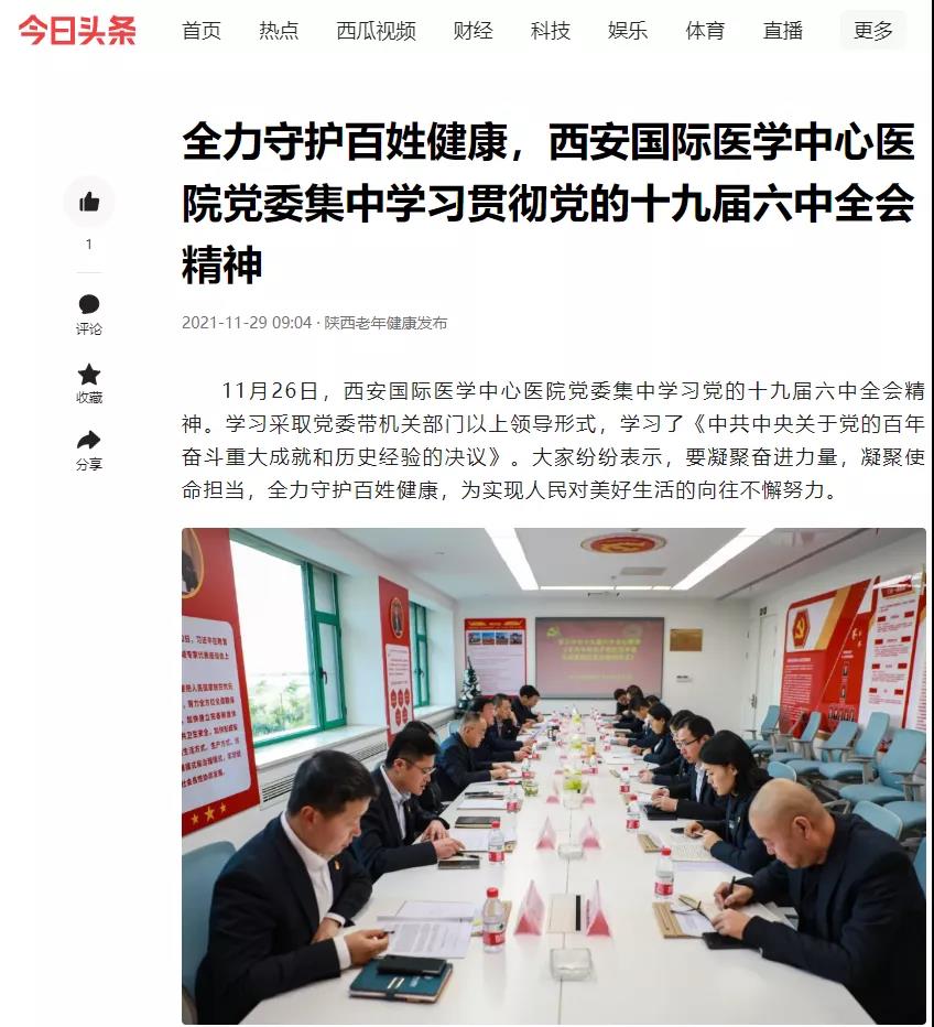 全力守護百姓健康,西安國際醫(yī)學中心醫(yī)院黨委集中學習貫徹黨的十九屆六中全會精神