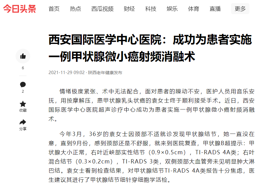 西安國際醫(yī)學中心醫(yī)院:成功為患者實施一例甲狀腺微小癌射頻消融術(shù)