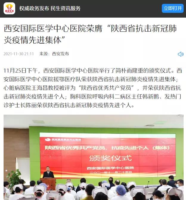 西安國際醫(yī)學中心醫(yī)院榮膺“陜西省抗擊新冠肺炎疫情先進集體”