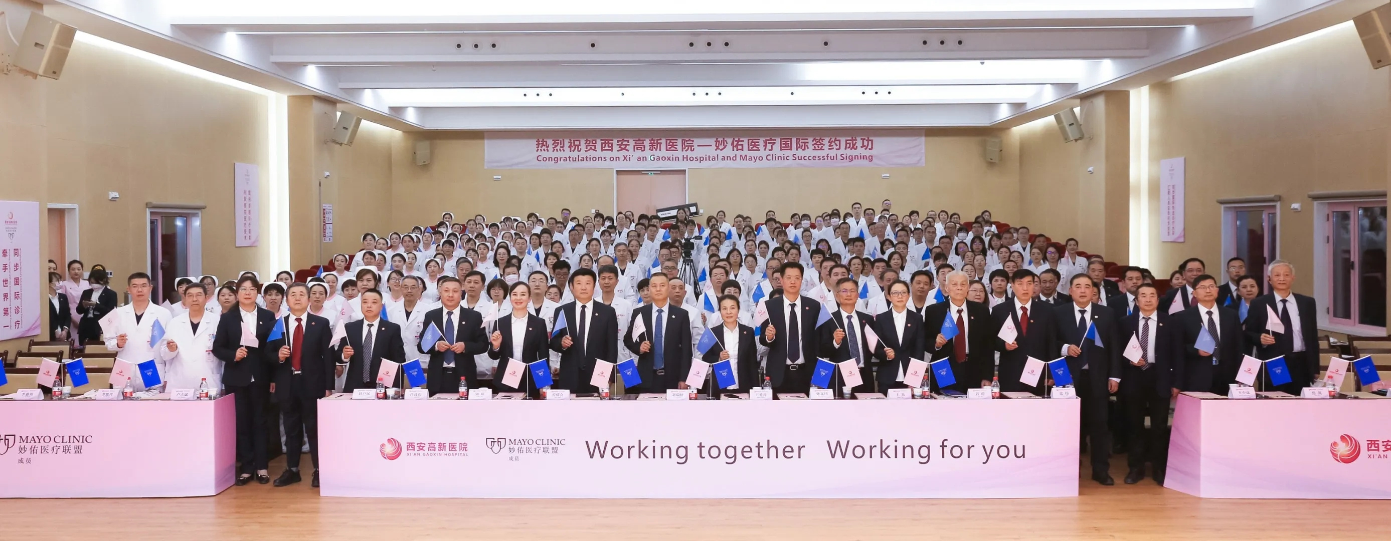 儀式上,妙佑醫(yī)療國際(Mayo Clinic)醫(yī)療執(zhí)行總監(jiān)思迪絲?瑞扎與西安國際醫(yī)學中心醫(yī)院院長尹強、西安高新醫(yī)院院長宋瑛共同簽署合作協(xié)議,并將聯(lián)盟醫(yī)院水晶杯授予兩家醫(yī)院。