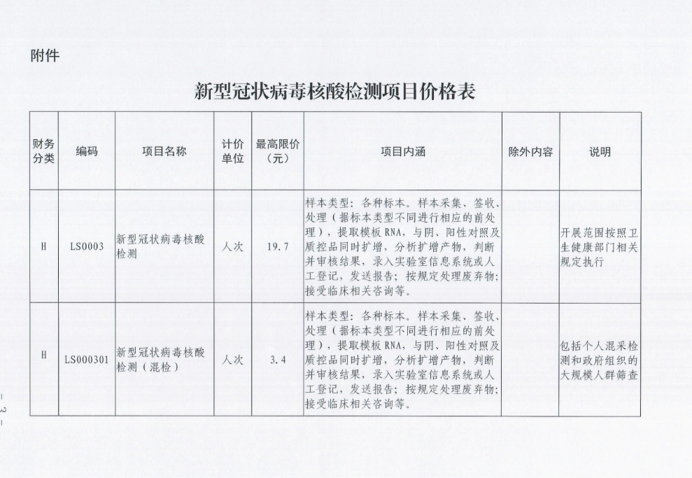 關(guān)于調(diào)整醫(yī)療機(jī)構(gòu)新型冠狀病毒核酸檢測項目價格的通知