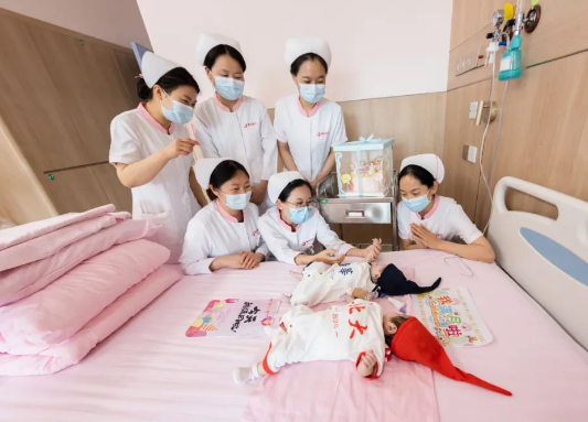 “樂(lè)樂(lè)、朵朵(均為化名)長(zhǎng)大了上清華、北大……”西安國(guó)際醫(yī)學(xué)中心醫(yī)院心臟外科病房傳出陣陣歡笑,兩個(gè)剛滿月的寶寶分別身著“清華”、“北大”連體衣,并排躺在病床上,接受來(lái)自家人和醫(yī)護(hù)人員的祝福。