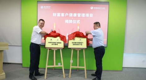 劉瑞軒總裁與王作全行長共同為“長安銀行財(cái)富客戶健康管理合作基地”“長安銀行財(cái)富客戶健康管理VIP室”揭牌。