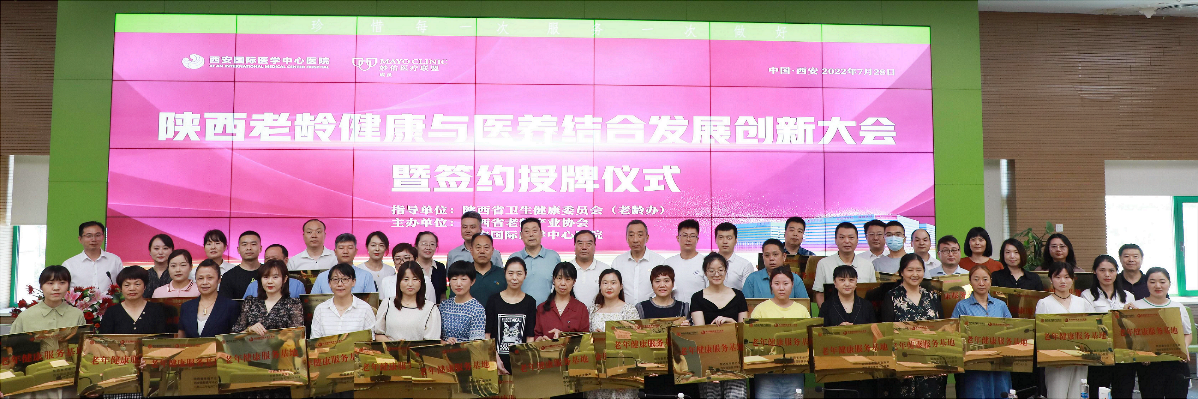 7月28日,西安國(guó)際醫(yī)學(xué)中心醫(yī)院與陜西省老齡產(chǎn)業(yè)協(xié)會(huì)主辦的陜西老齡健康與醫(yī)養(yǎng)結(jié)合發(fā)展創(chuàng)新大會(huì)暨簽約授牌儀式在醫(yī)院召開(kāi)。來(lái)自西安、漢中、延安、寶雞、渭南、商洛等地區(qū)的全省38家養(yǎng)老機(jī)構(gòu)負(fù)責(zé)人和代表參加本次大會(huì)。陜西省衛(wèi)健委一級(jí)巡視員、陜西省老齡辦常務(wù)副主任藺全鎖,老齡健康處處長(zhǎng)師中榮,陜西省老齡產(chǎn)業(yè)協(xié)會(huì)會(huì)長(zhǎng)周尚、執(zhí)行會(huì)長(zhǎng)侯培琪、秘書(shū)長(zhǎng)史嘉玲,西安市老年醫(yī)養(yǎng)結(jié)合學(xué)會(huì)會(huì)長(zhǎng)芮海榮,國(guó)際醫(yī)學(xué)集團(tuán)董事長(zhǎng)史今,西安國(guó)際醫(yī)學(xué)中心醫(yī)院院長(zhǎng)尹強(qiáng)、副院長(zhǎng)張斌、副院長(zhǎng)劉延彤等院部領(lǐng)導(dǎo),協(xié)會(huì)領(lǐng)導(dǎo)及全省各養(yǎng)老機(jī)構(gòu)代表出席本次大會(huì)。